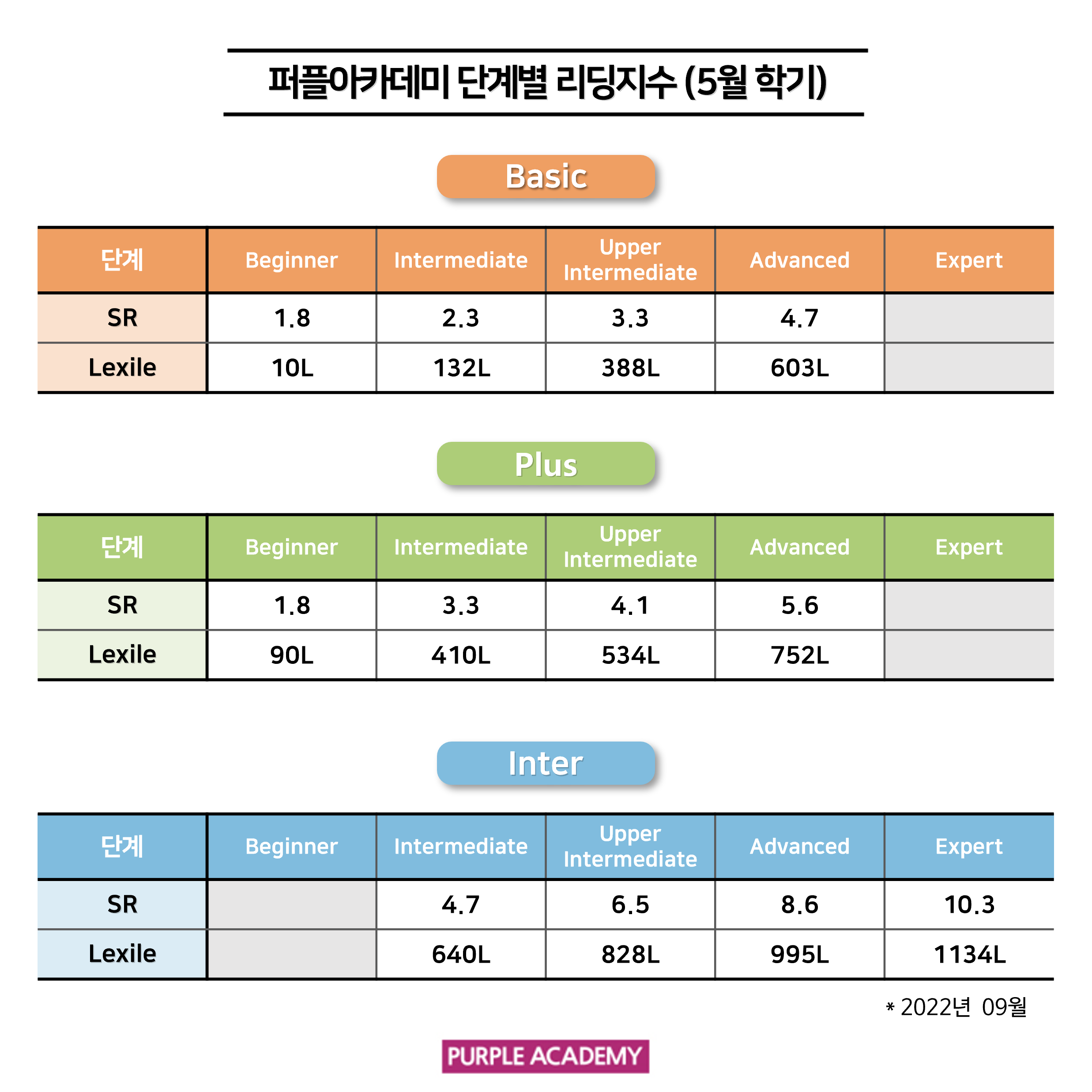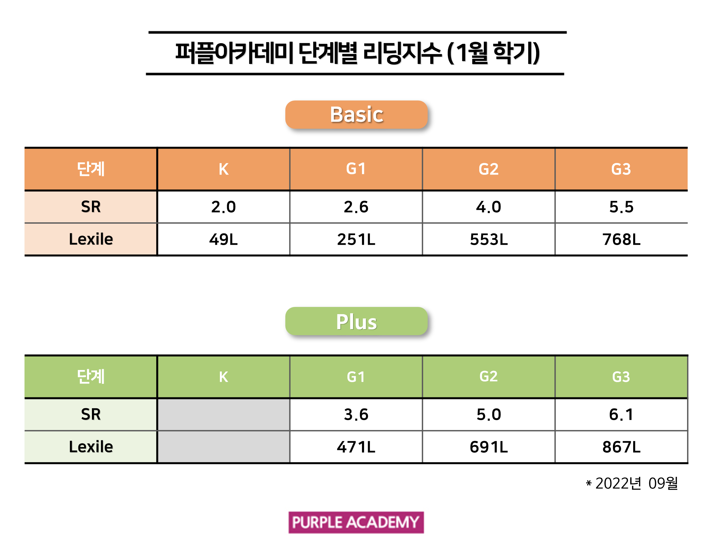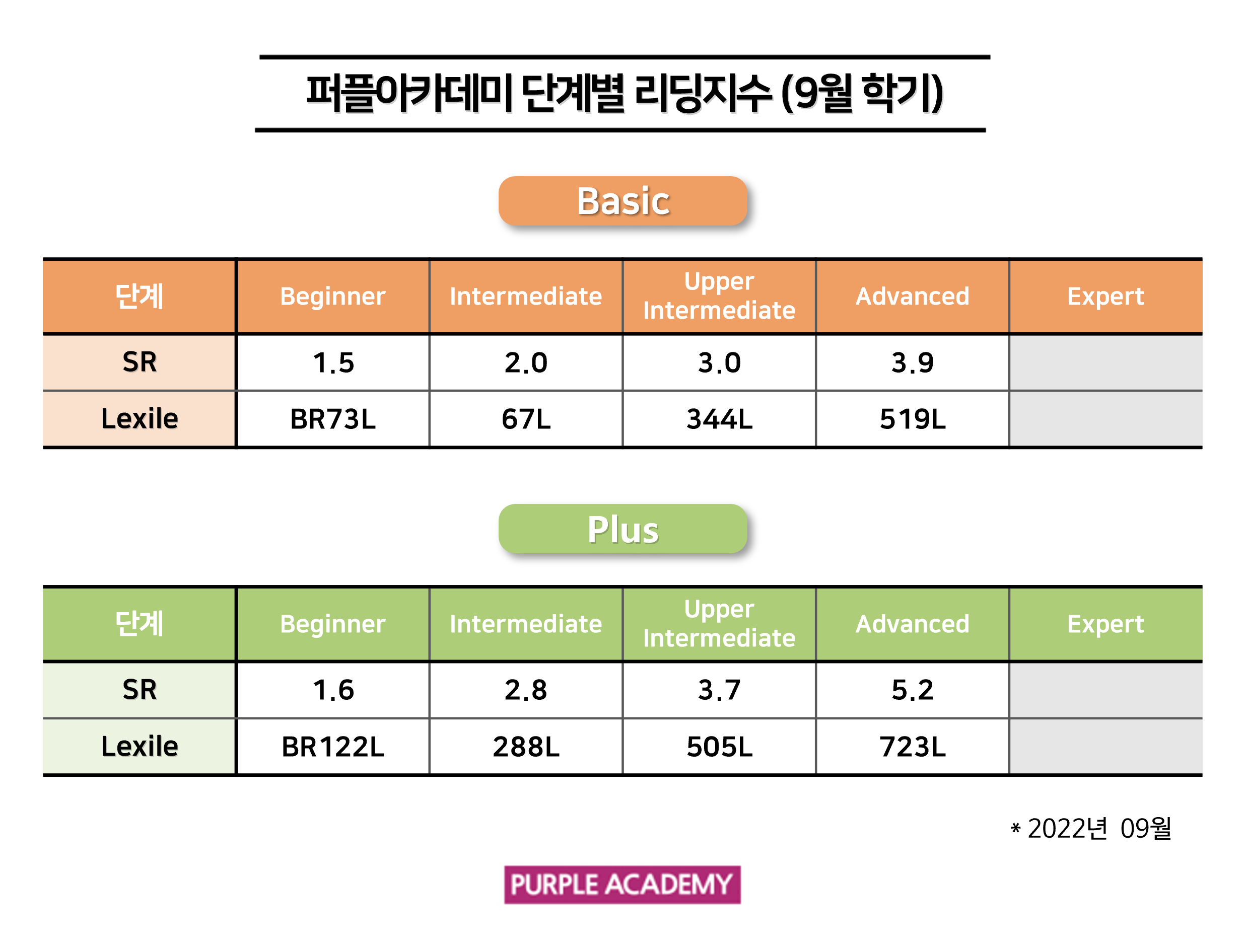 퍼플 Kids의 학기별, 단계별 2022년 9월 리딩 지수를 공개합니다!