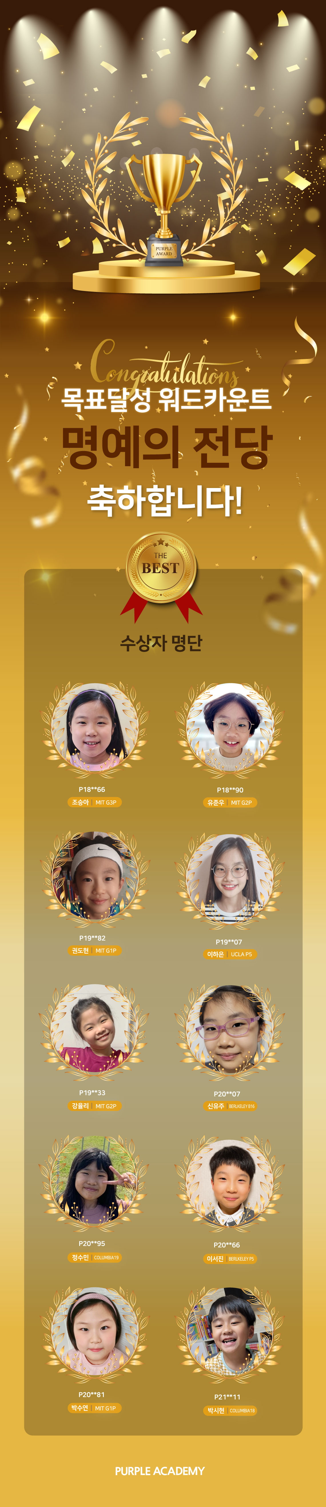 명예의 전당에 오른 10명의 학생들 모두 축하합니다 :D