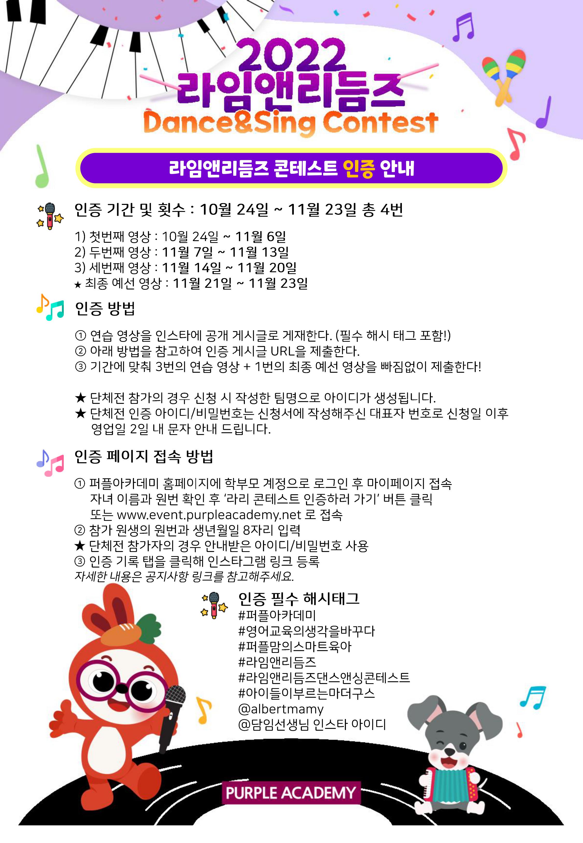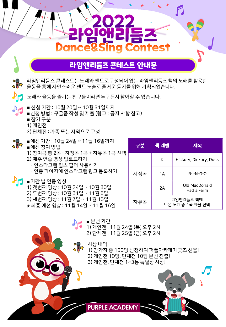 ▶ 라임앤리듬즈 참여곡 - 지정곡 1곡, 자유곡 1곡 총 2곡