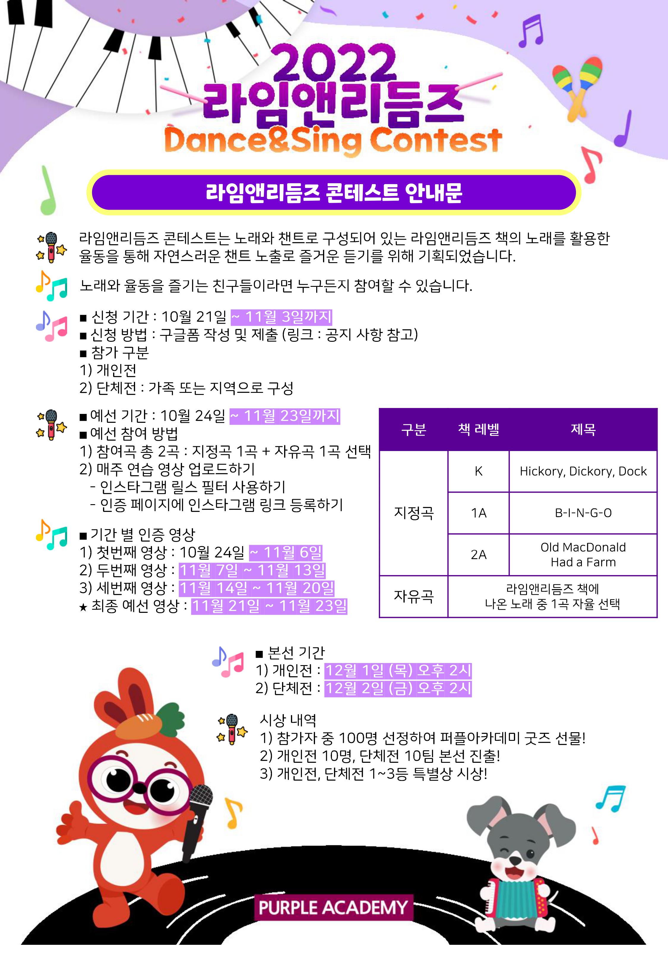 □ 자유곡은 라임앤리듬즈 책에 나온 노래 중 1곡 자율 선택
