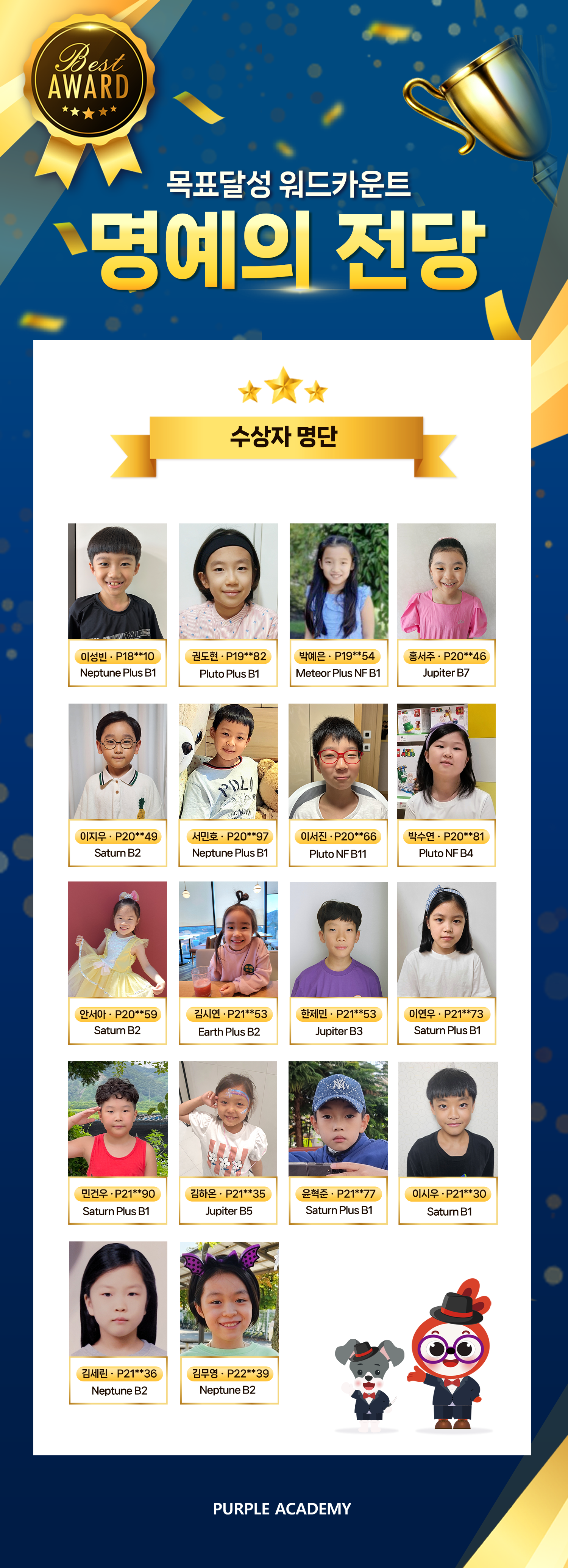 2022년 9월부터 2023년 8월까지, 9월 학기 12개월 동안 빠짐없이 스탬프를 달성한 친구들을 소개합니다.