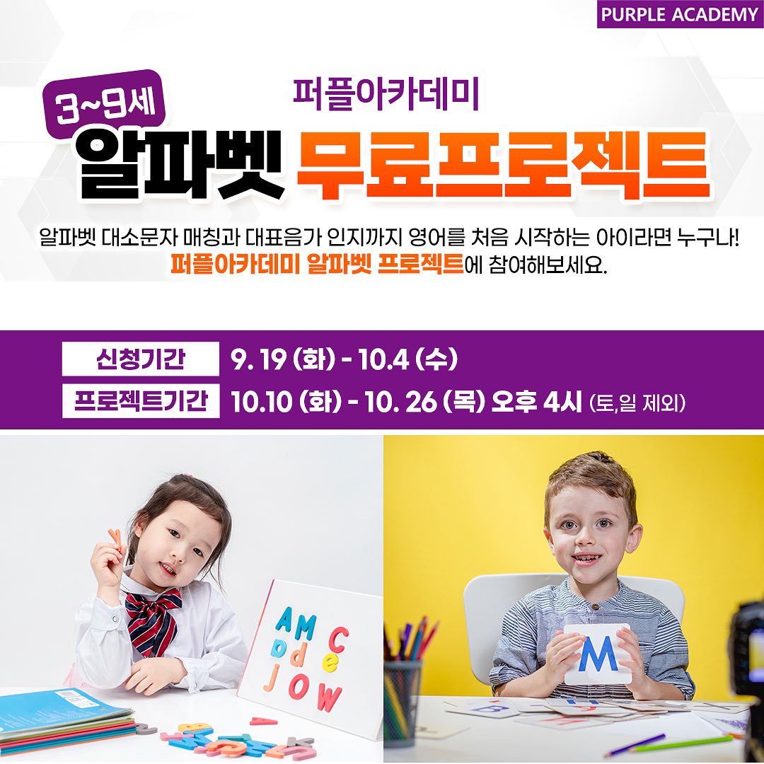 저희 퍼플아카데미에서 "알파벳 무료 프로젝트"를 준비했답니다!