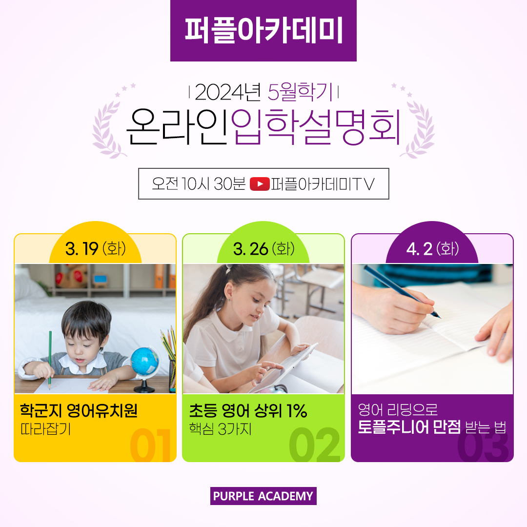 퍼플아카데미 2024년 5월학기 모집을 맞이하여 온라인 입학 설명회를 개최합니다!