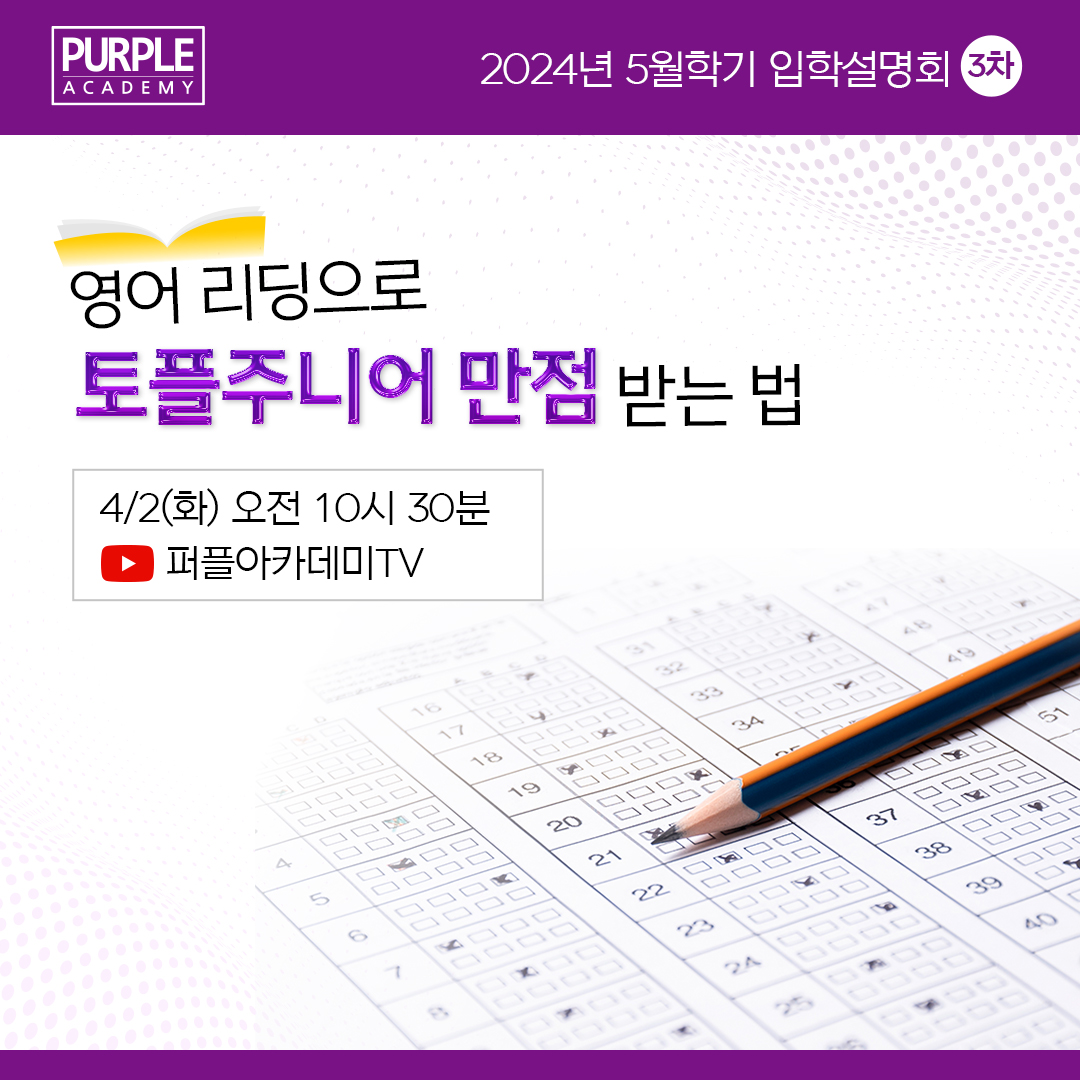 5월학기 마지막 온라인 설명회 "영어 리딩으로 토플주니어 만점받는 법"이 진행됩니다!