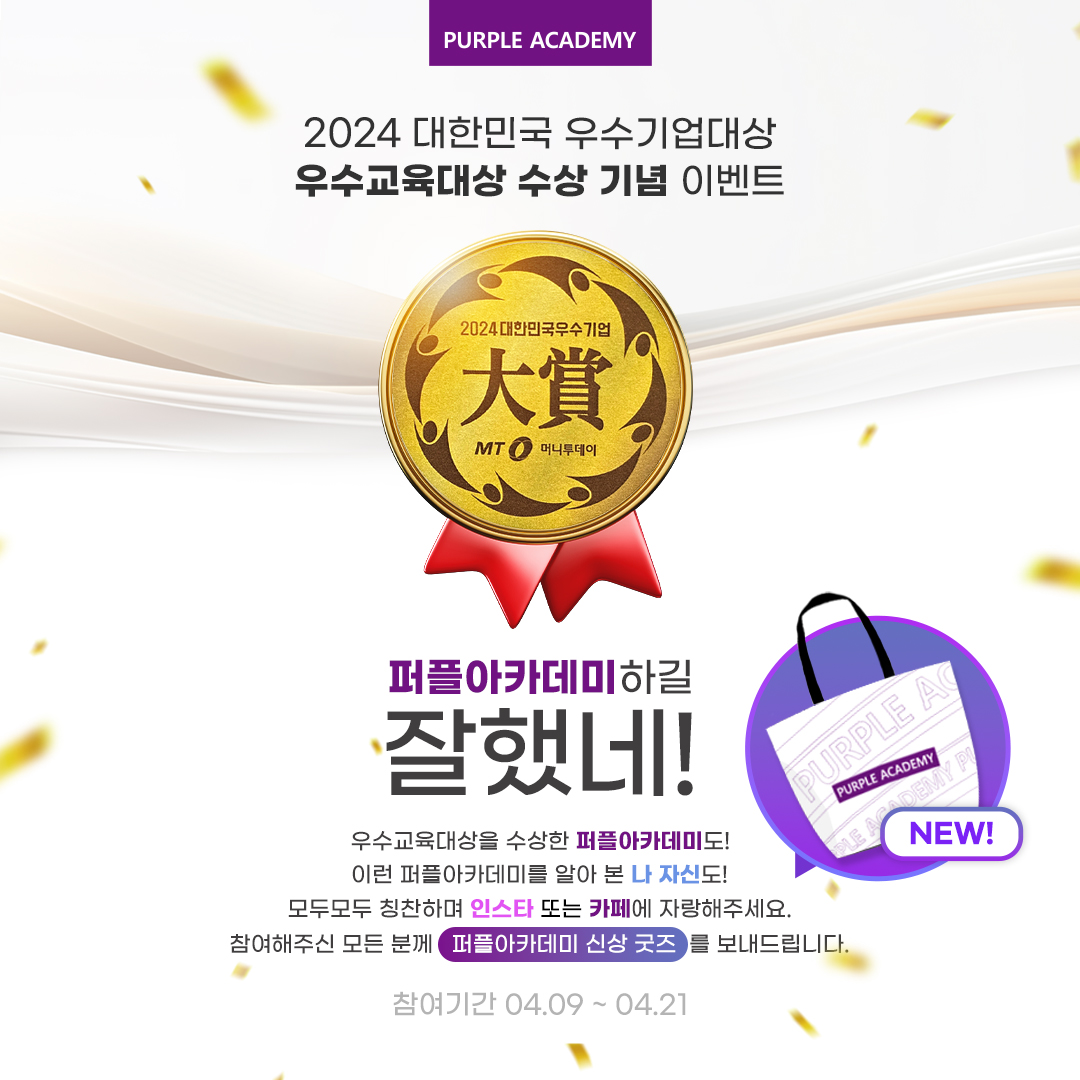 ★필수 해시태그: #우수교육대상수상기념 #퍼플아카데미 #퍼플아카데미하길잘했네
