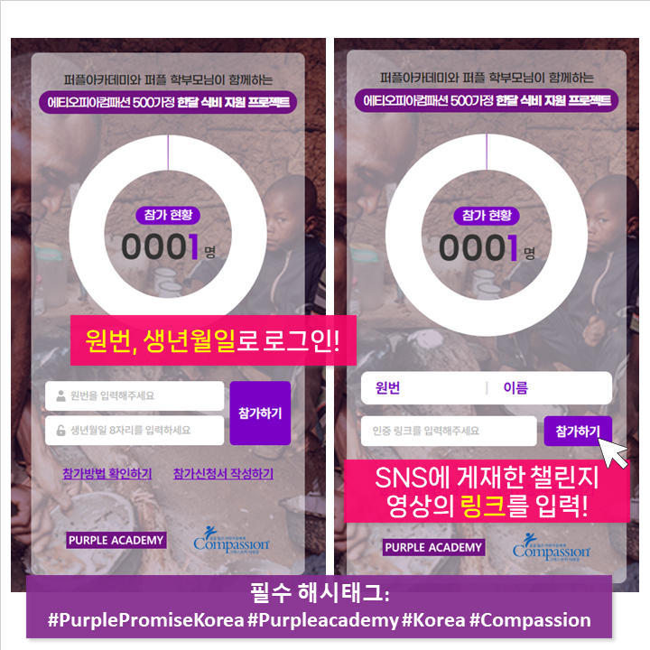 천 명의 목소리가 모두 모이면, 퍼플아카데미가 에티오피아 500 가정의 한 달 식비를 지원합니다.