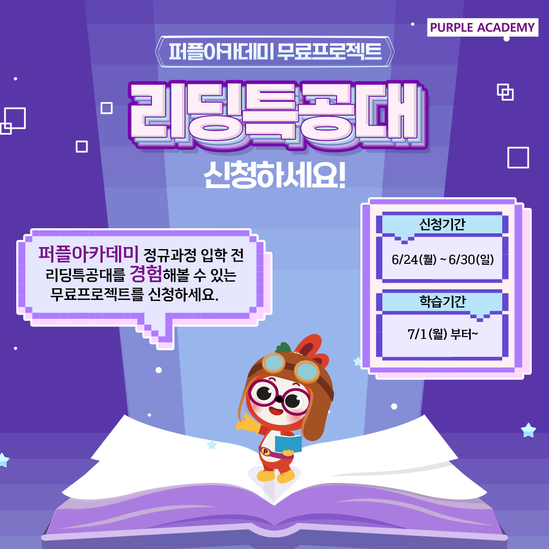 퍼플아카데미 리딩특공대 무료 프로젝트는 아직 퍼플아카데미 정규과정에 입학하지 않은 분들도