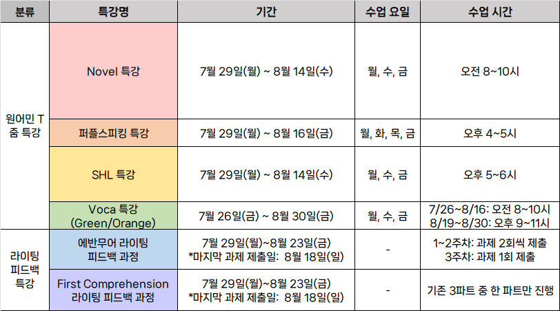[ 여름방학 특강 일정 ]