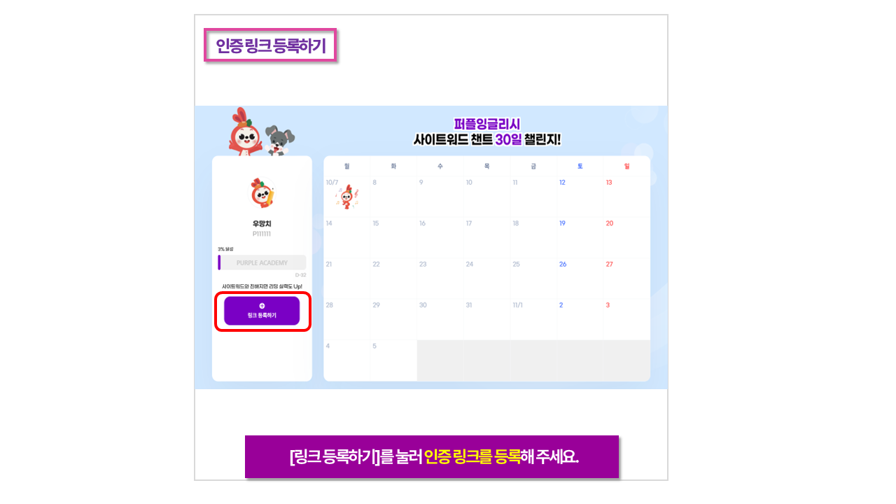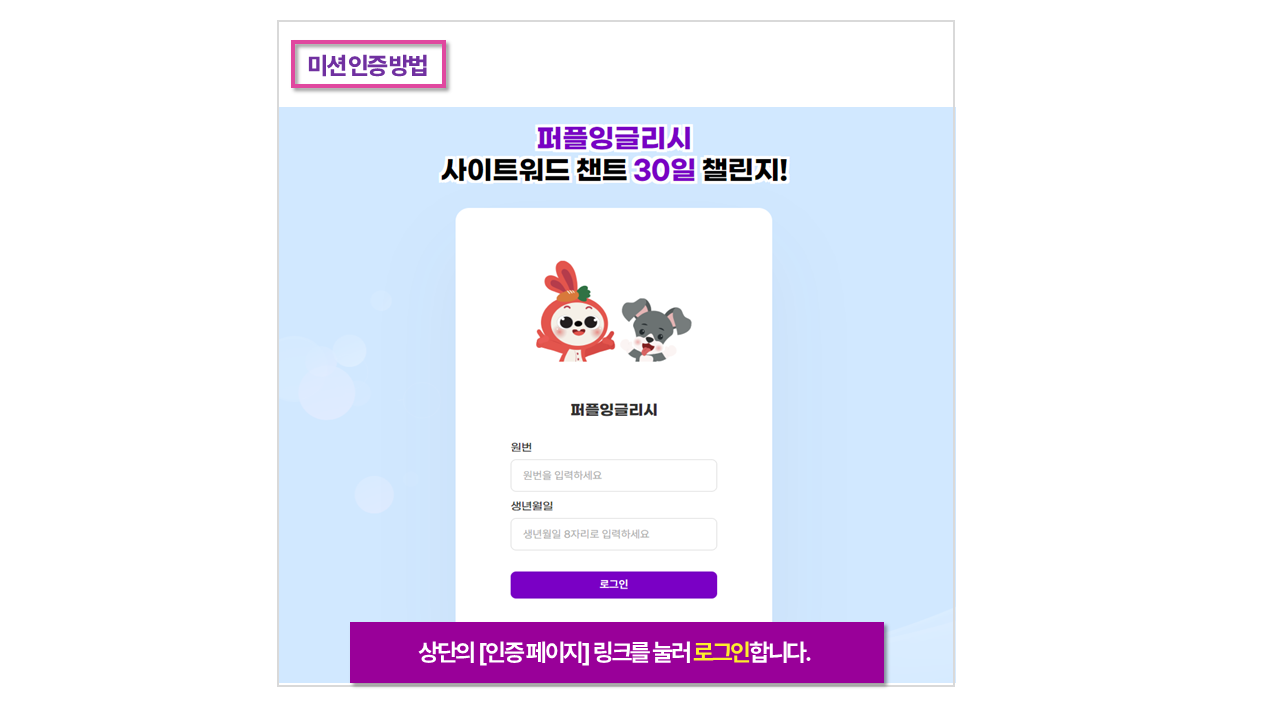 ※ 본 챌린지는 퍼플잉글리시 학습자 대상으로 진행됩니다.