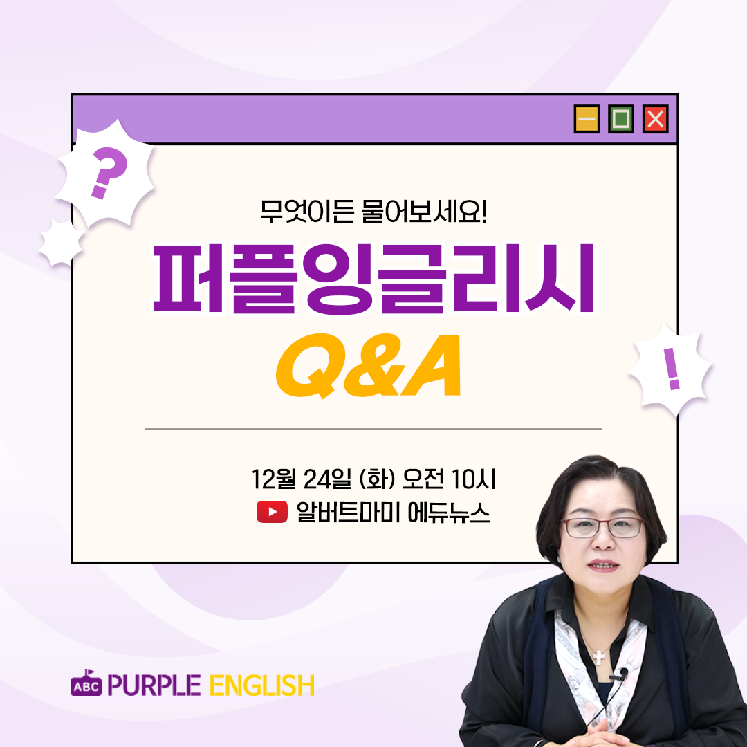 12월 24일(화) 오전 10시! 알버트마미에듀뉴스에서 진행되는 퍼플잉글리시 Q&A 라이브
