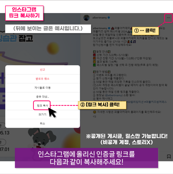※ 공개된 게시글, 릴스만 가능합니다. 비공개계정과 스토리는 인정되지 않습니다.