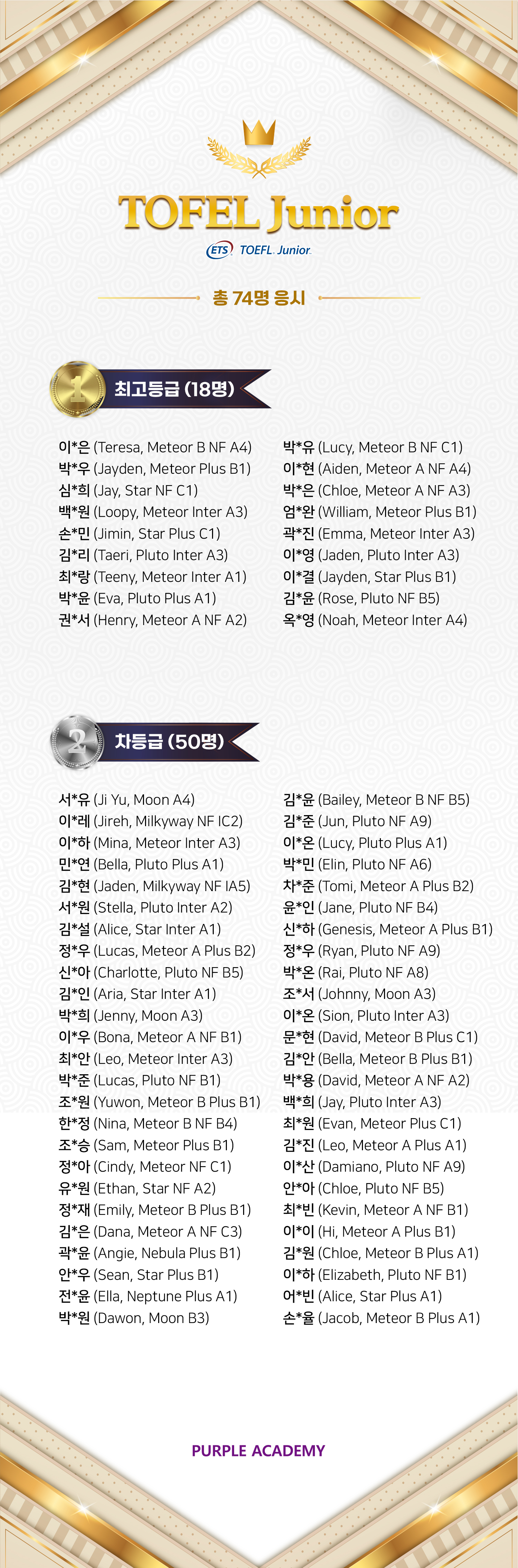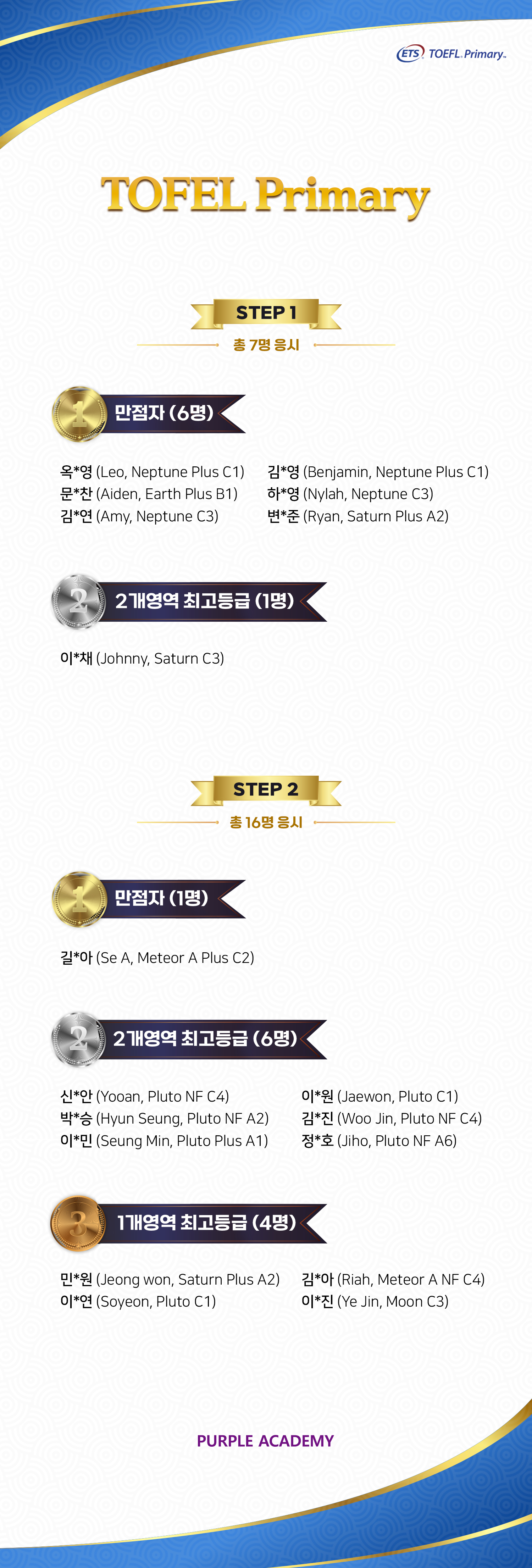 2025년 02월 TOEFL Junior, Primary 성적우수자 축하합니다!
