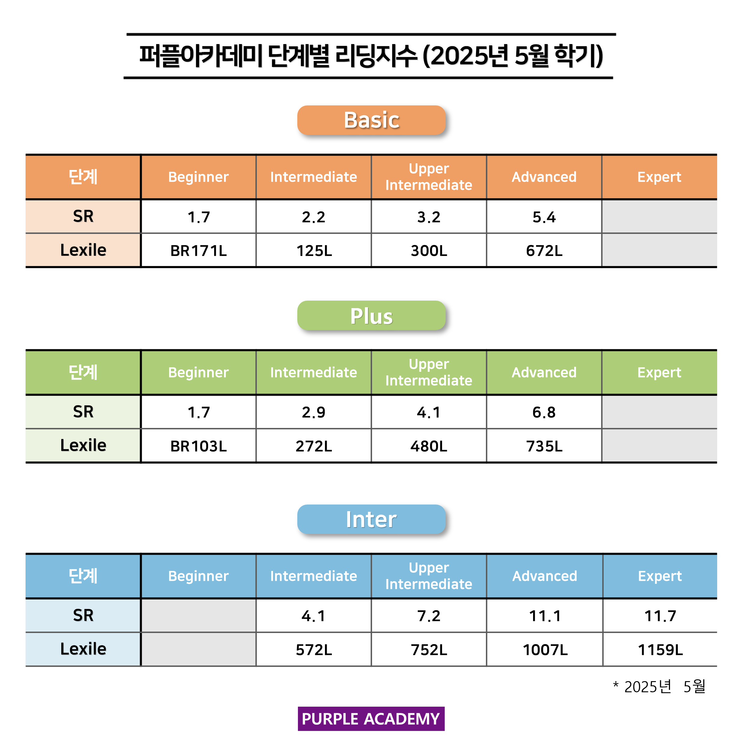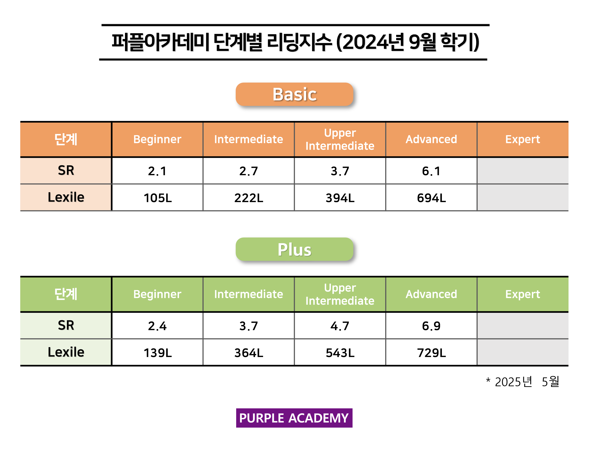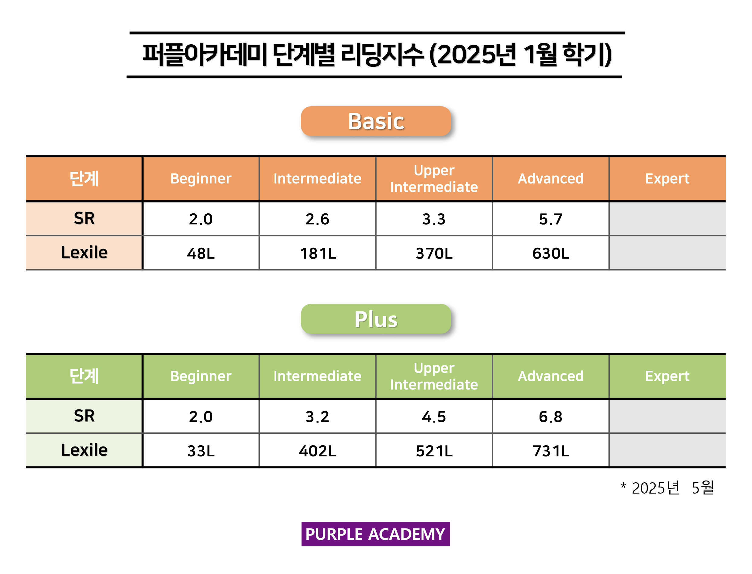 퍼플 Kids의 학기별, 단계별 2025년 5월 리딩 지수를 공개합니다!