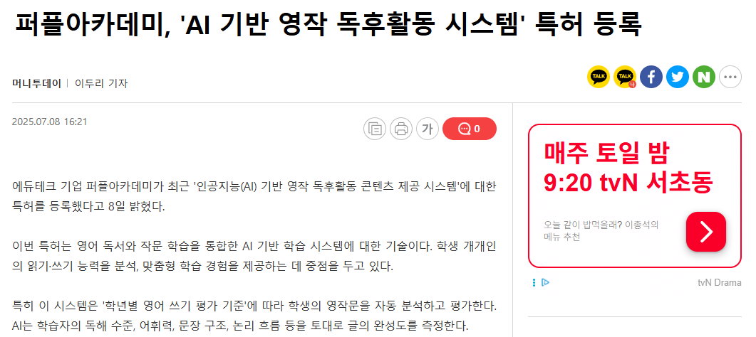 2025년 7월, 퍼플아카데미가 다섯 번째 특허인