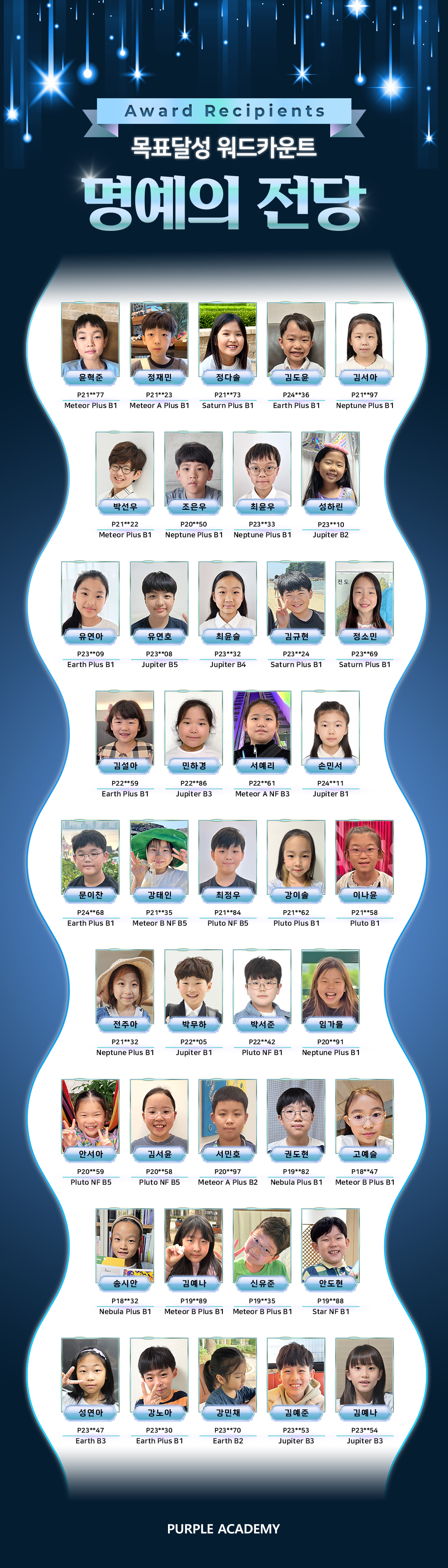 2024년 9월부터 2025년 8월까지, 9월 학기 12개월 동안 빠짐없이 스탬프를 달성한 친구들을 소개합니다.