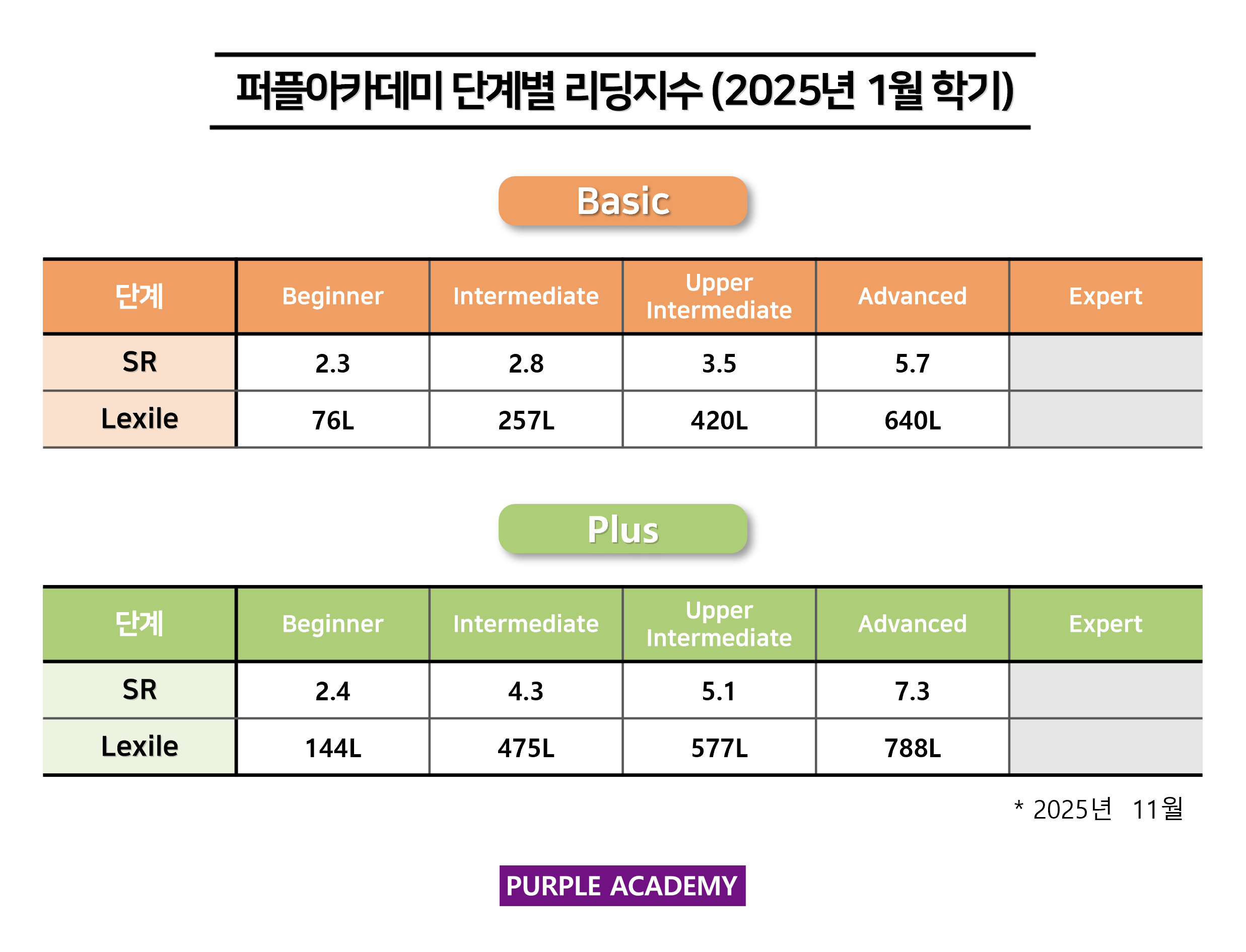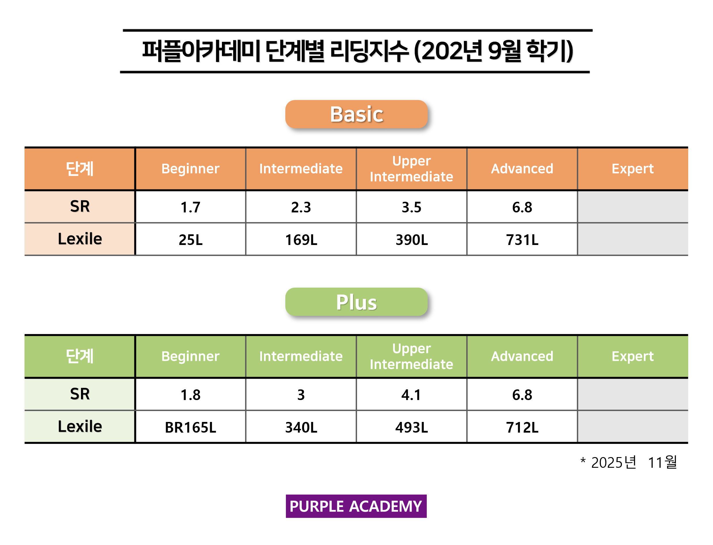 퍼플 Kids의 학기별, 단계별 2025년 11월 리딩 지수를 공개합니다!