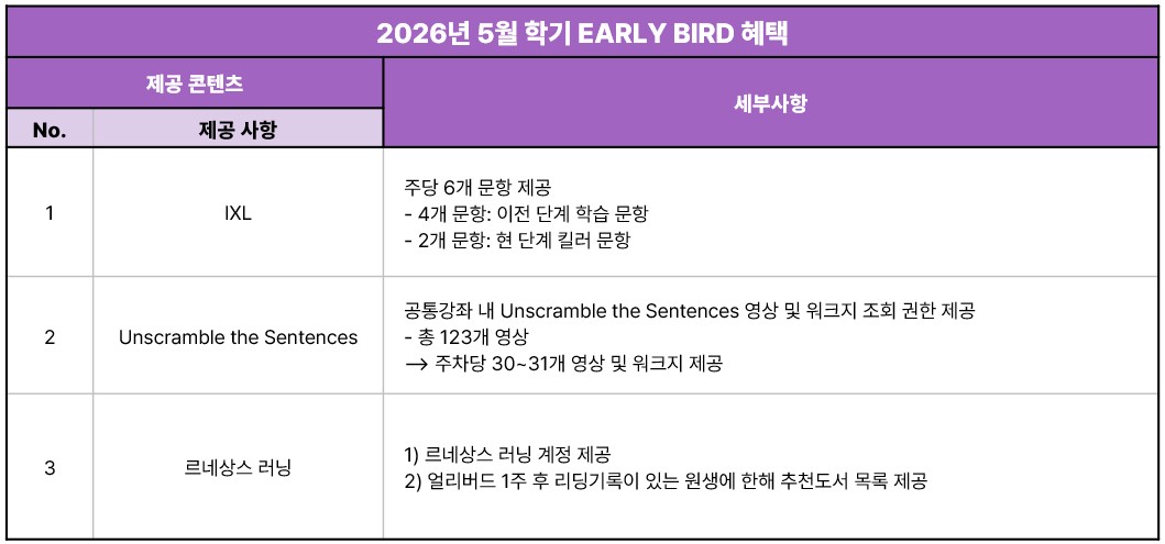 [2026년 5월 학기 EARLY BIRD 혜택]