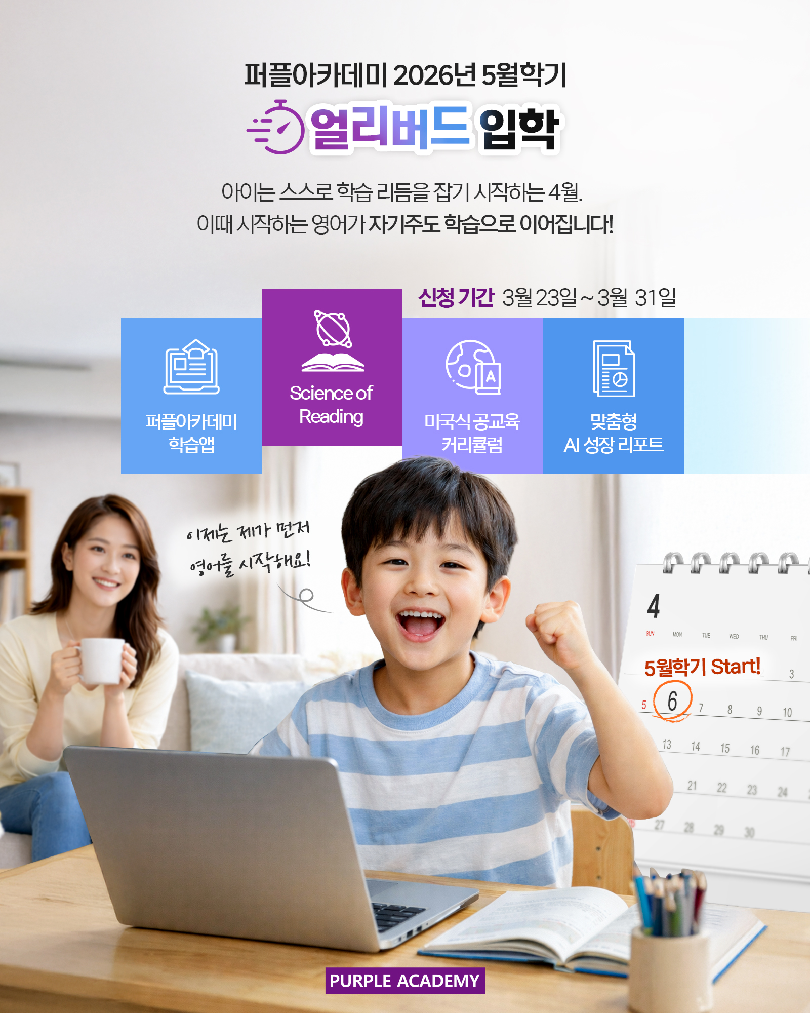 퍼플아카데미의 탄탄한 커리큘럼으로 학습 리듬을 먼저 익히고, 리딩 실력도 한 걸음 앞서 성장할 수 있는 최고의 기회!