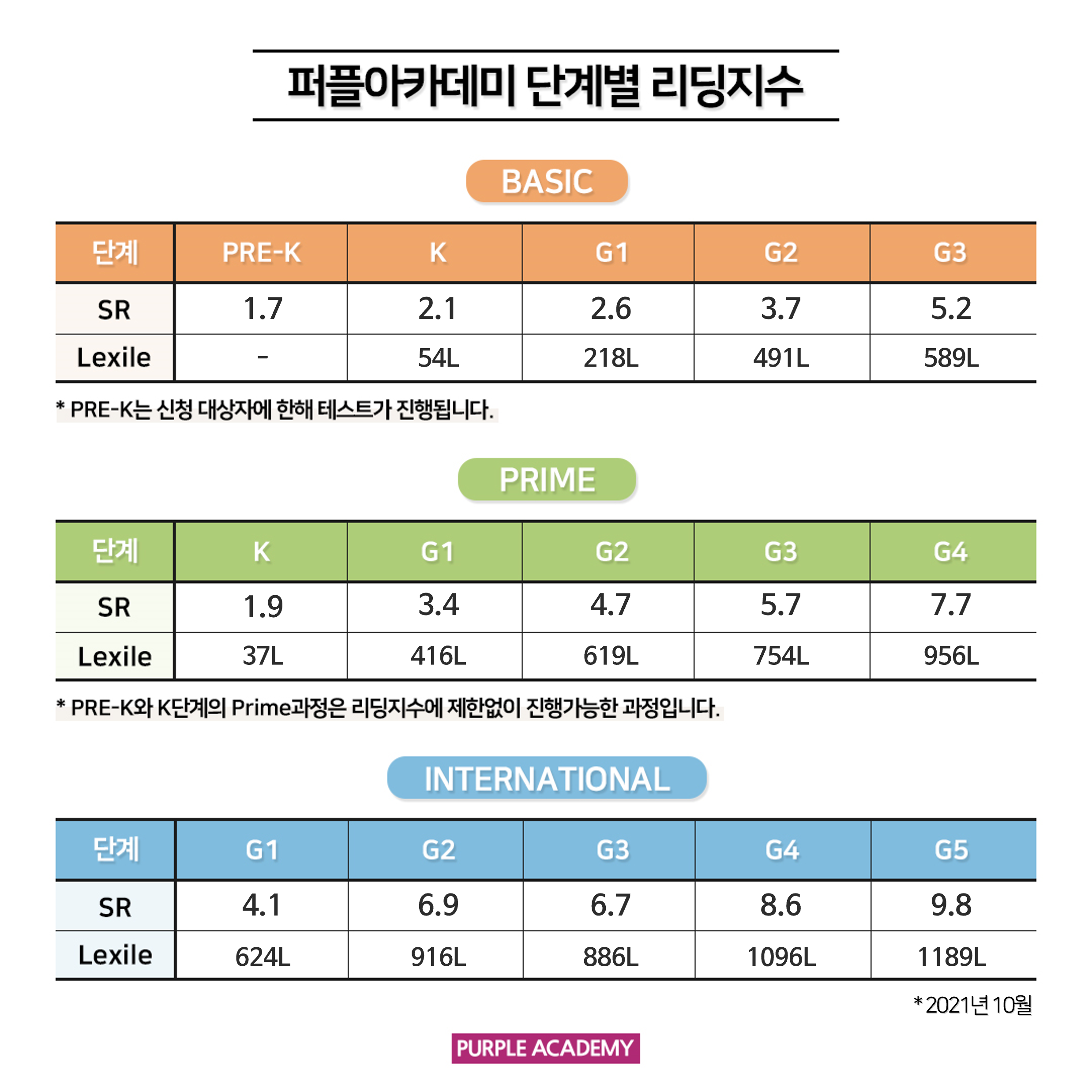 앞으로도 홈페이지에서 매월 퍼플아카데미 원생들의 리딩 점수가 공개됩니다.