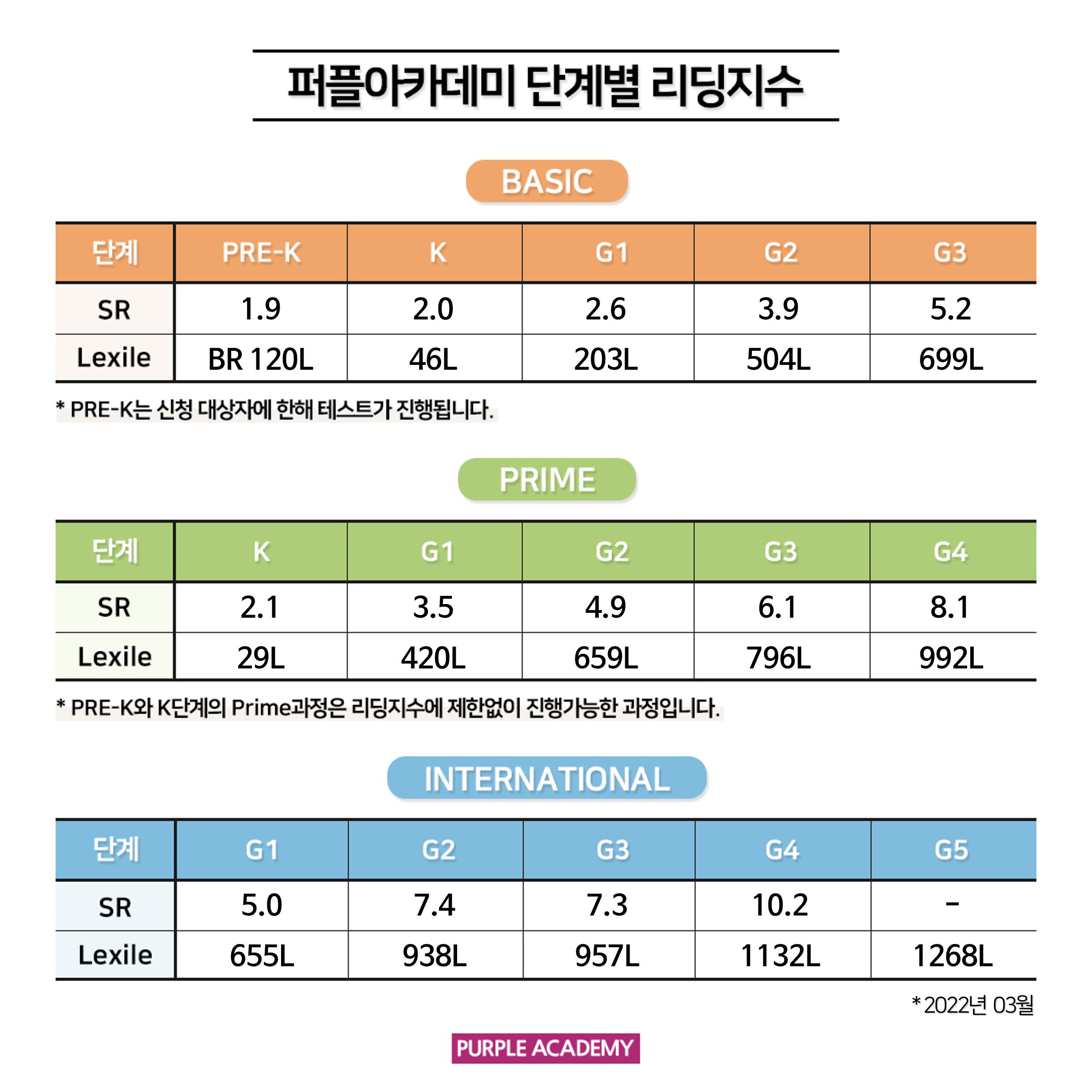 퍼플 Kids의 단계별, 기수별 2022년 3월 리딩 지수를 공개합니다!
