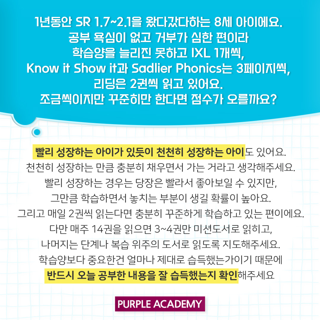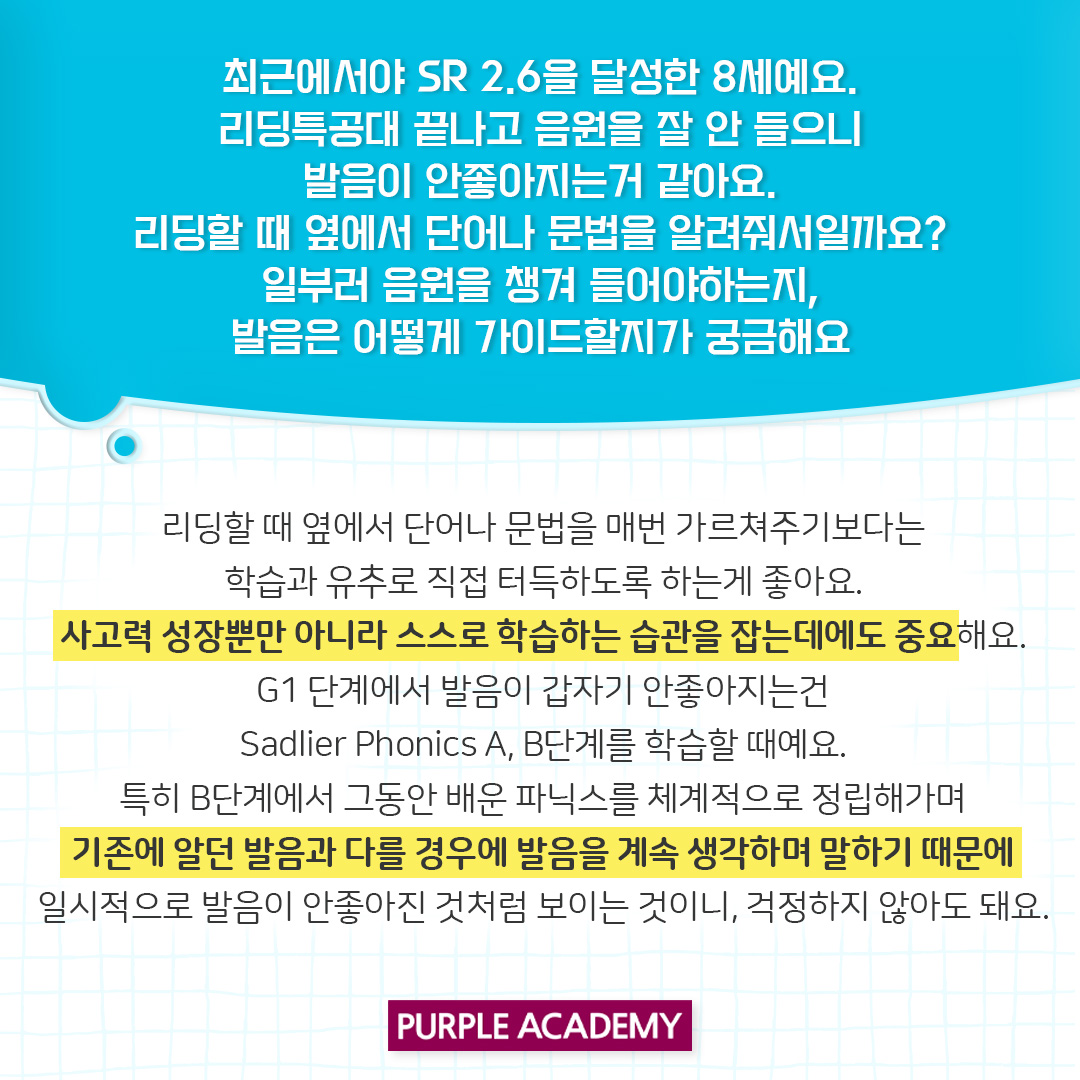 걱정마세요! 퍼플아카데미 원장님께서 해결할 방법을 알려드립니다.