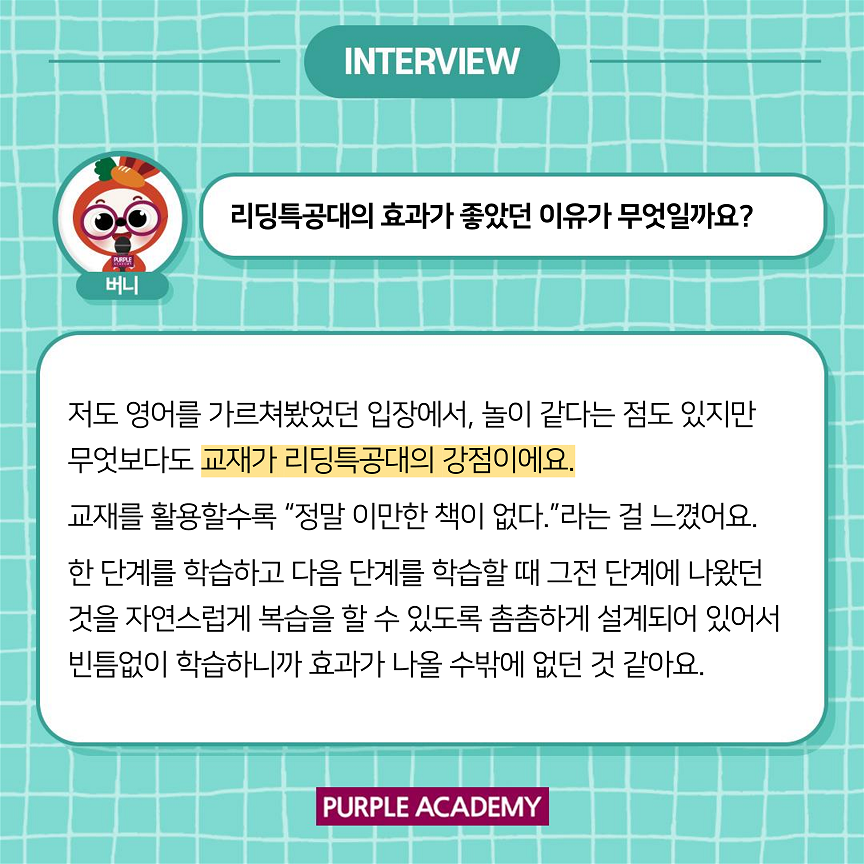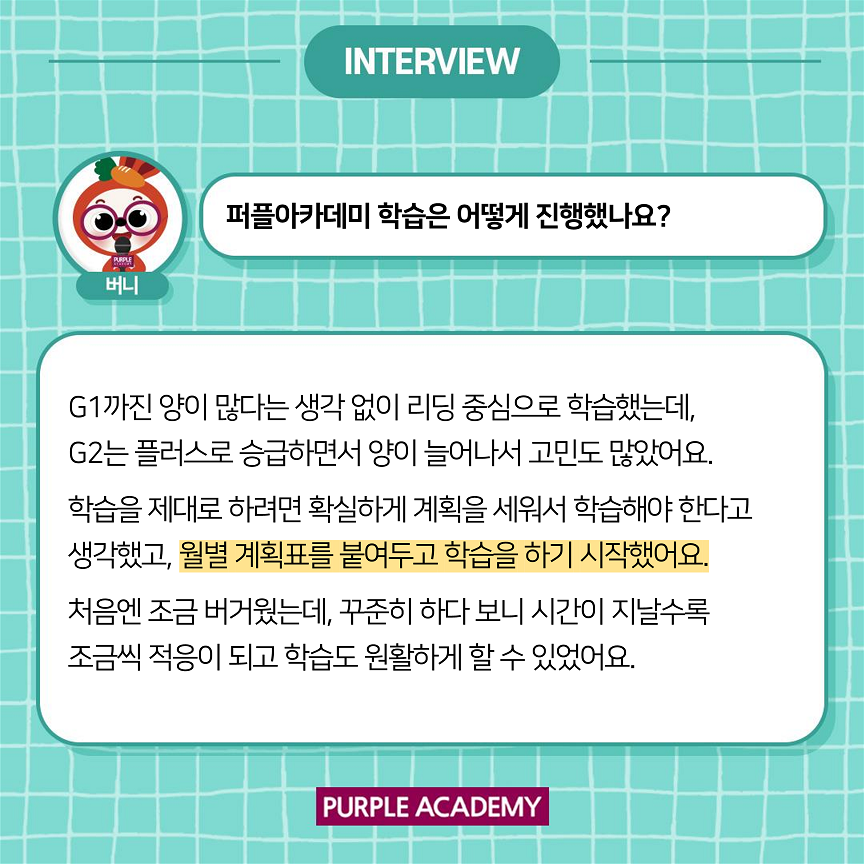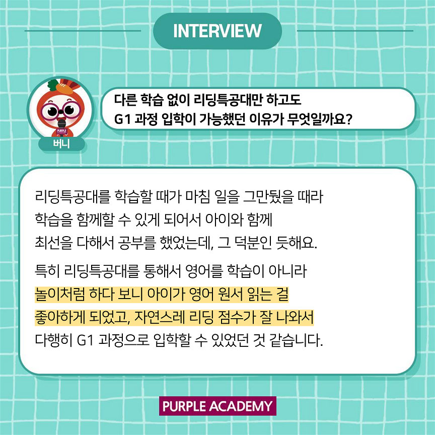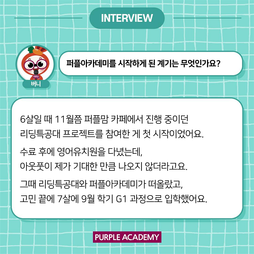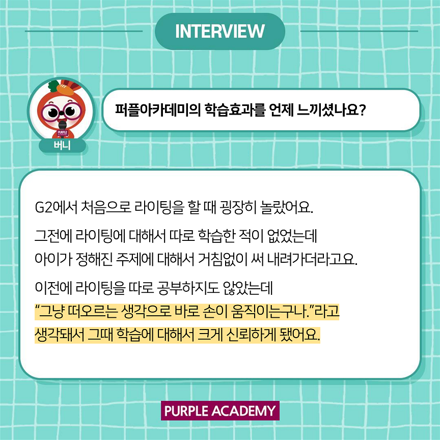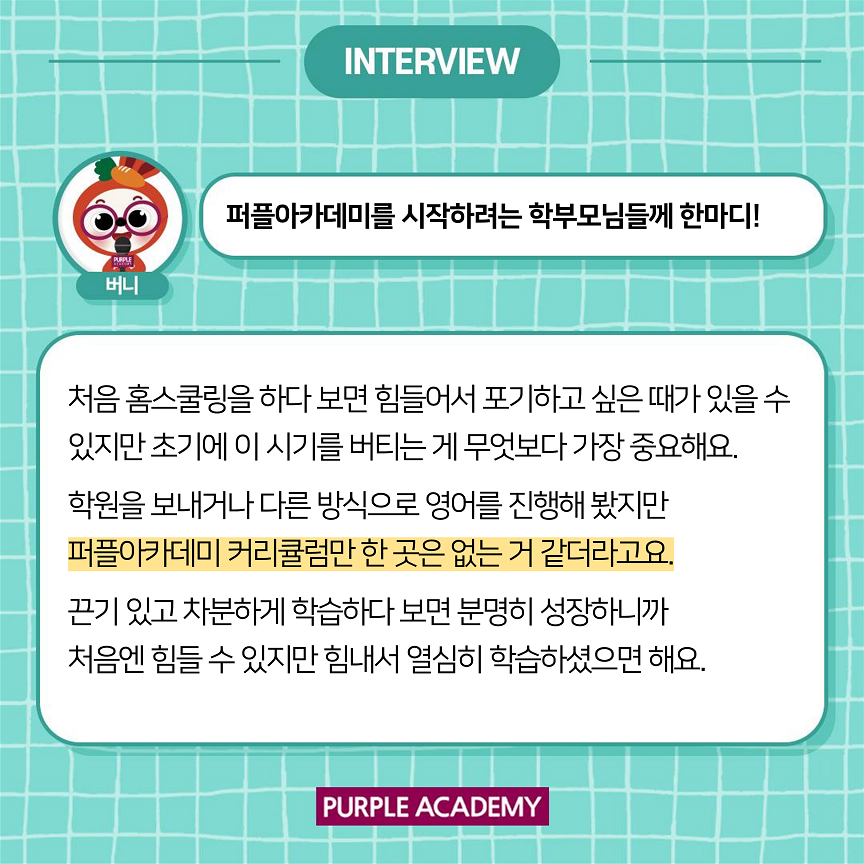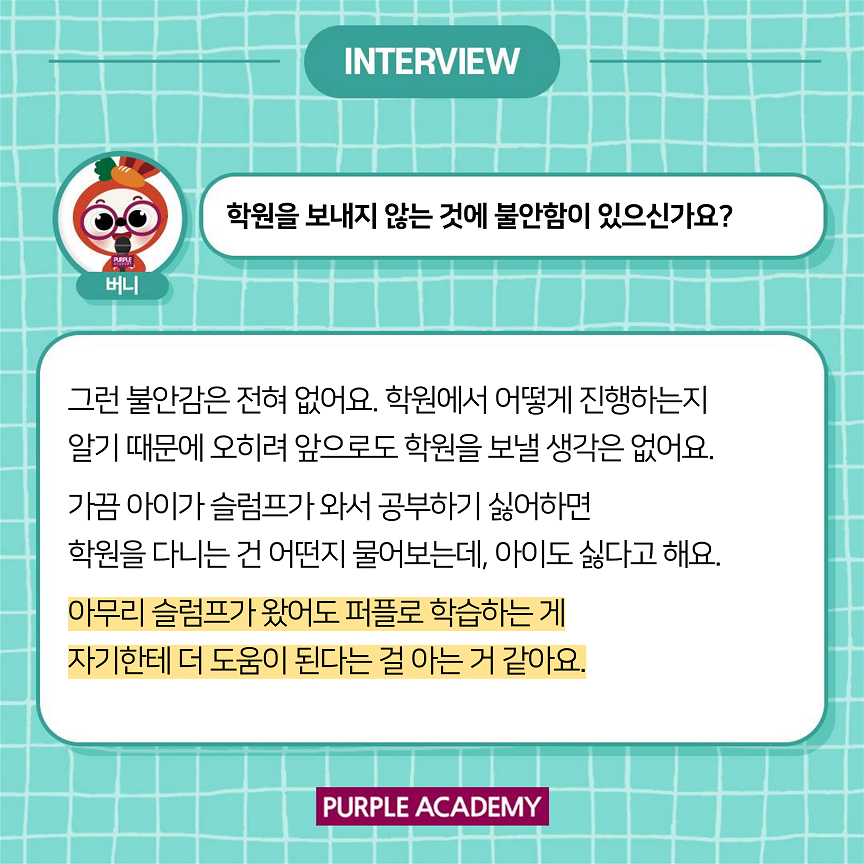 다른 아이들은 어떻게 학습하고 있는지 알려드리기 위해 퍼플아카데미 학부모 인터뷰를 준비하였습니다.