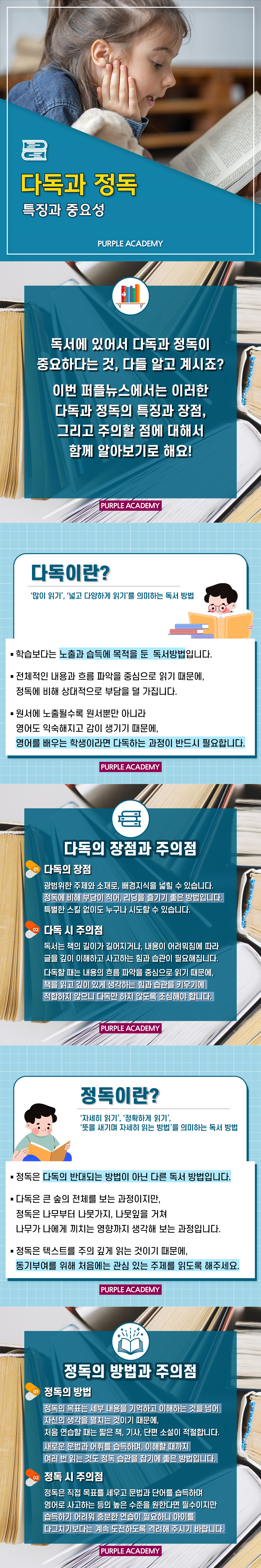 이번 퍼플아카데미 교육TIP은 [다독과 정독 - 특징과 중요성]에 대해 알려드립니다.
