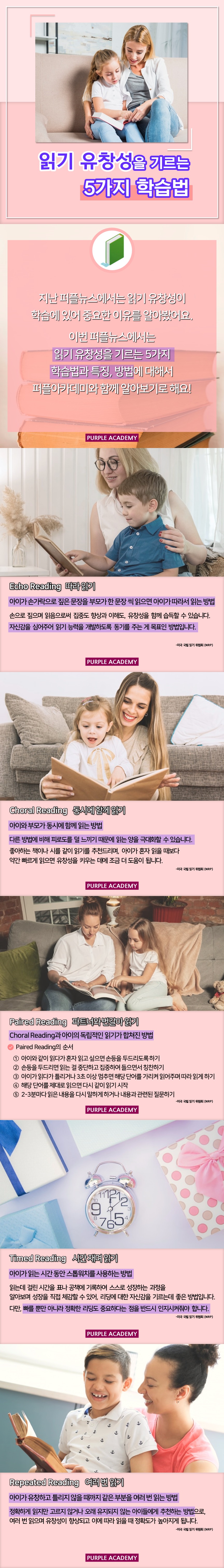 이번 퍼플아카데미 교육 TIP으로는 읽기 유창성을 기르는 5가지 학습법을 알려드립니다.