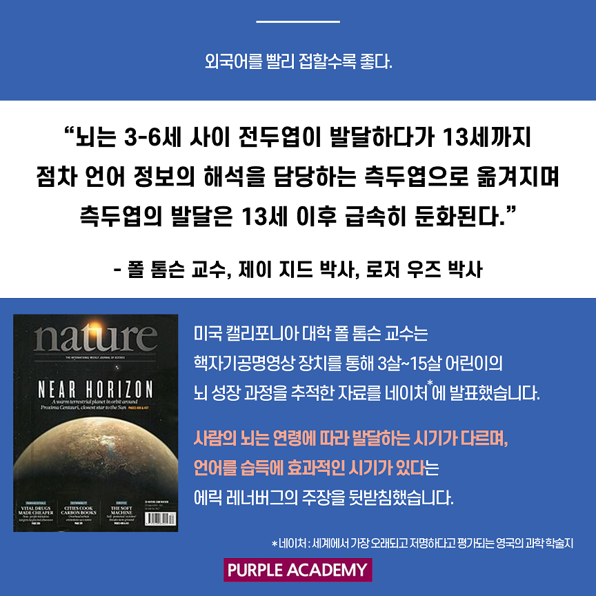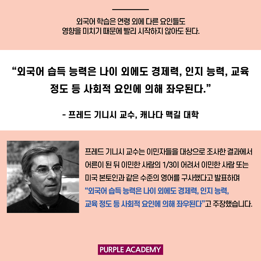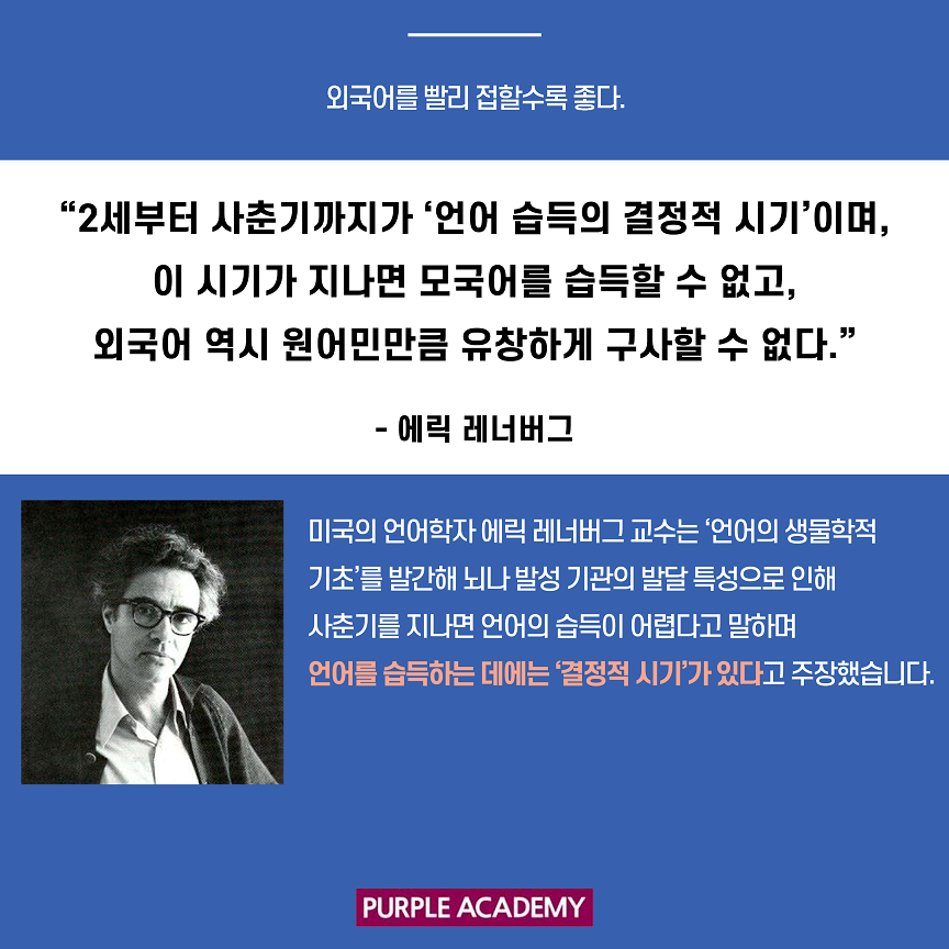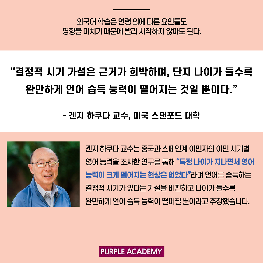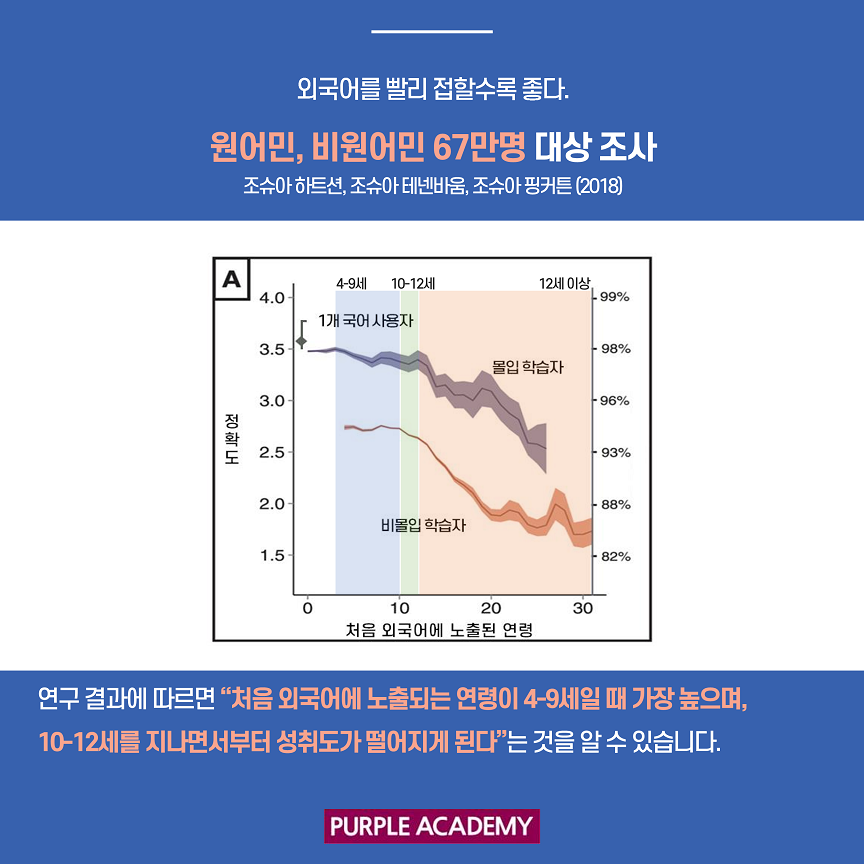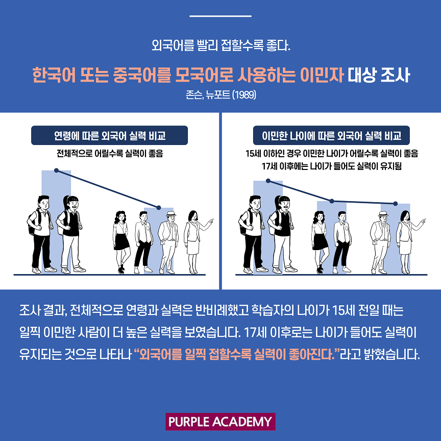 이번 퍼플 뉴스에서는 언어학자들의 연구와 주장들을 통해 영어 공부를 언제 시작하는 게 좋을지 알아볼게요!